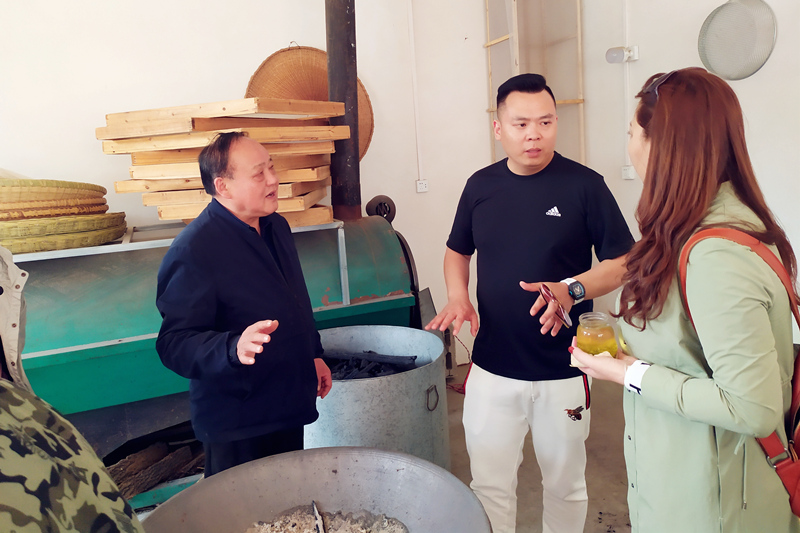 在這個秀美的山村里,周祖宏是個“名人”,他是周氏炒茶家族第四代傳人,憑著一手炒茶絕活,被河南省文化廳評為河南省省級非物質(zhì)文化遺產(chǎn)項(xiàng)目(信陽毛尖茶采制技藝)代表性傳承人。洛陽開元集團(tuán)一行來到周老師家里,董事長許明月與周老師親切交談,對制茶、品茶、信陽茶文化等一系列問題做了相互交流。在手工茶坊里集團(tuán)員工們也興致高昂地觀摩了炒茶師傅高超的手藝,手工炒茶可以使茶的營養(yǎng)成分更高,口感上偏濃,更加耐泡。大家品的是茶,吐出的是都市的困頓與繁雜。在300余畝的茶園中,縷縷茶香沁人心脾,在采茶工的引領(lǐng)下,全體員工愜意自得地體驗(yàn)采茶的樂趣。